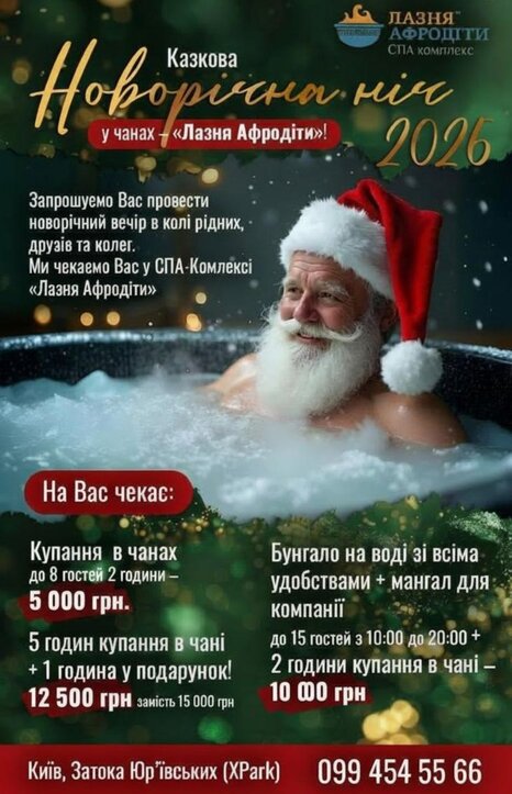 Баня Афродіти знаходиться в Парку Муромець (парк Дружби Народів) (XPark) в 8 км від Хрещатика, орієнтири - поруч з Московським мостом, найближче метро Почайна (Петрівка).